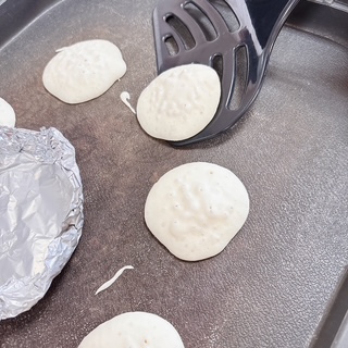 自分の生地を受け取ったら、スプーンであんこを塗ってサンドします!