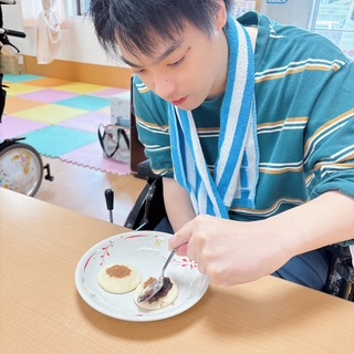 自力で塗ることが難しい利用者様は、職員がお手伝い(*^_^*)